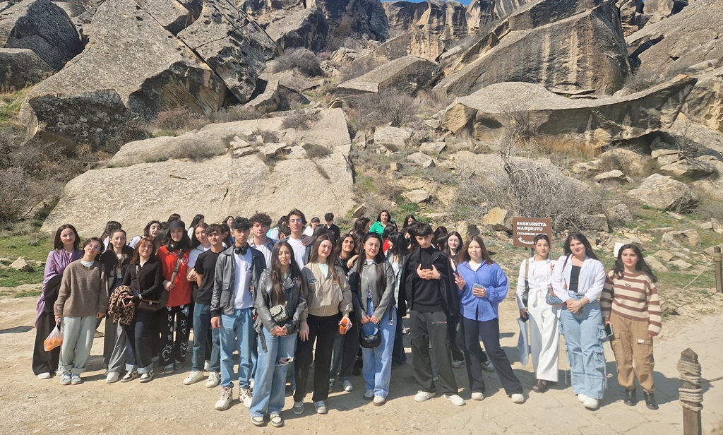 Students of Baku Eurasian University (BAAU) went on an excursion to the Gobustan State Historical and Artistic Reserve. The trip was organized under the supervision of the lecturers of the Department of Regional Studies and Humanities — Aygun Miriyeva, Jale Ismayilova, and Meleyke Adigozelova.